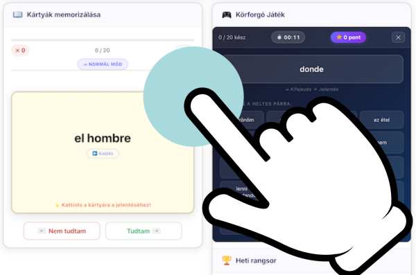 Megkérdeztük, hogy hogyan szeretnek tanulni. A legtöbben azt mondták, hogy a szavakat leginkább kontextusban, vagyis egy példamondatban könnyű megjegyezni. Ezért ezt is beépítettük a programba.